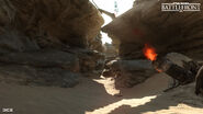 One map, Graveyard of Giants, is set in the sandy dunes of Jakku right next to several crashed Imperial Star Destroyers and one Rebel Mon Calamari Cruiser. It was designed for larger game modes such as Turning Point. The second Jakku map, Goazon Badlands, takes place in a narrower, more remote, rockier Jakku setting, and was aptly designed for smaller game modes, like Cargo. Both maps take place during the Battle of Jakku, the battle that ended the Galactic Empire.