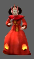 She sports the Queen's red dress and makeup, as seen also on Queen Apailana. The things different are the hairstyle and bulbs on her dress. She is equipped with the ELG-3A blaster, recon droids, grenades, and health dispensers.